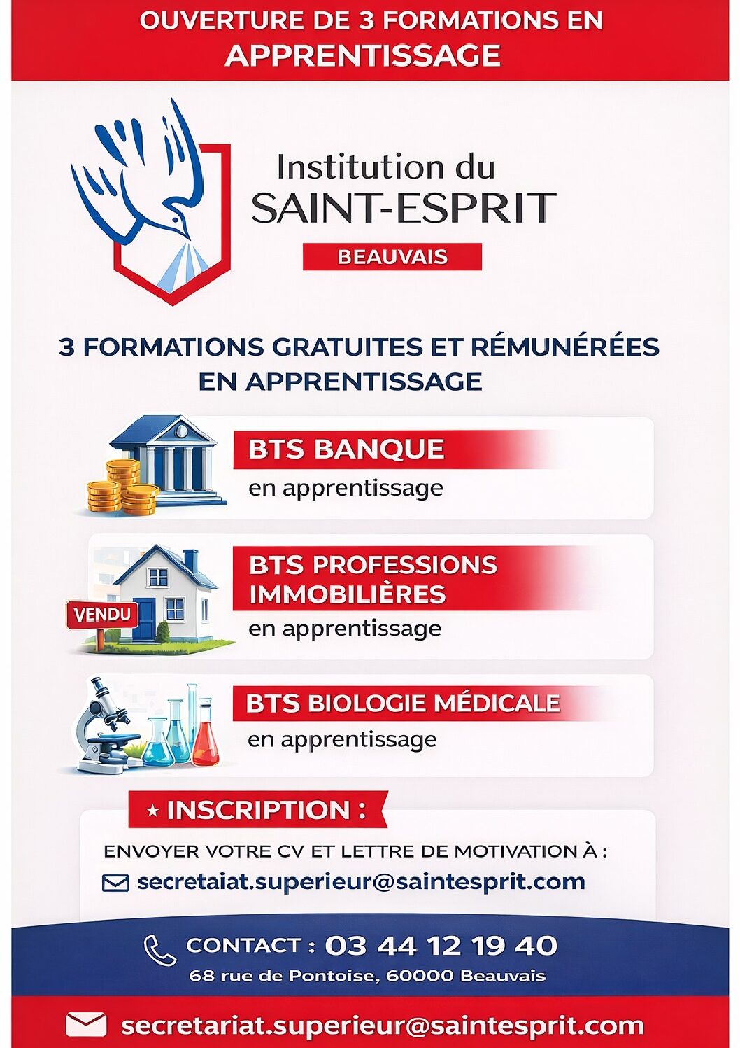 Ouverture de 3 nouvelles formations en apprentissage à Beauvais : BTS Banque, Immobilier et Biologie Médicale
